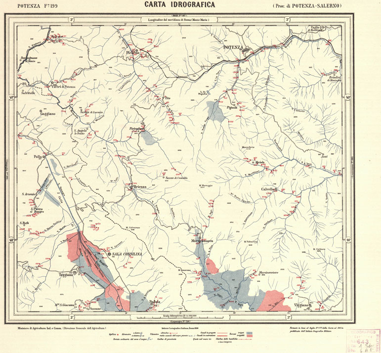 CARTA IDROGRAFICA DEL REGNO D'ITALIA - Foglio 199 - Potenza