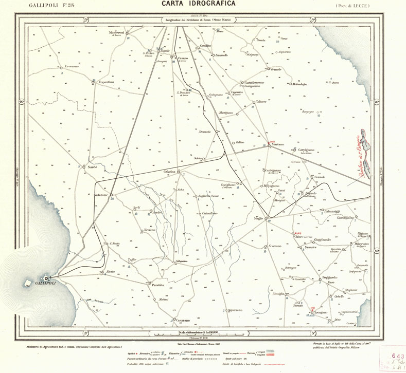 CARTA IDROGRAFICA DEL REGNO D'ITALIA - Foglio 214 - Gallipoli