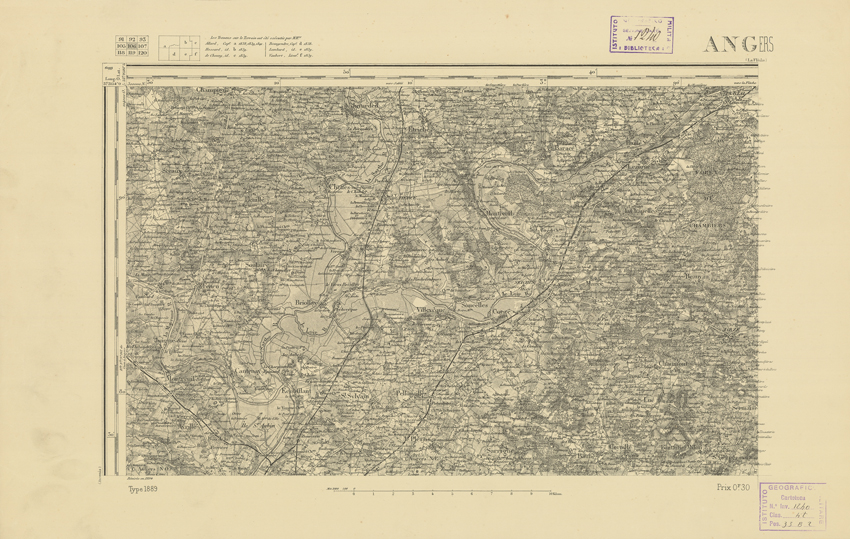 "Paris. Service Géographique de l'Armée, 1889. Ebbe origine dall'Edizione zincografica in quarti di foglio, stabilita dal 1879, per la carta detta de "L'Etat-Major". Infatti non rispondono più il sistema della riproduzione zincografica alle esigenze che la revisione dei fogli imponeva, per un inevitabile logoramento dei rami originali, fu proposta dapprima la correzione degli zinchi, ma questo, importando un lavoro lungo e gravoso, si adottò il procedimento galvanico. I rami galvanici ottenuti e corretti secondo questo sistema presero il nome di "édition type 1889". Allo scopo di facilitare l'incisione fu adoperata la suddivisione in quarti di foglio come per l'edizione zincografica. La revisione dei fogli di questo tipo non fu iniziata che nel 1893. Dal catalogo del S.G.A. risultano mancanti a questa edizione i dipartimenti della "Moselle", del "Bas-Rhin" e del "Haut-Rhin" per i quali non esiste che una edizione in fogli interi aggiornata nel 1901."