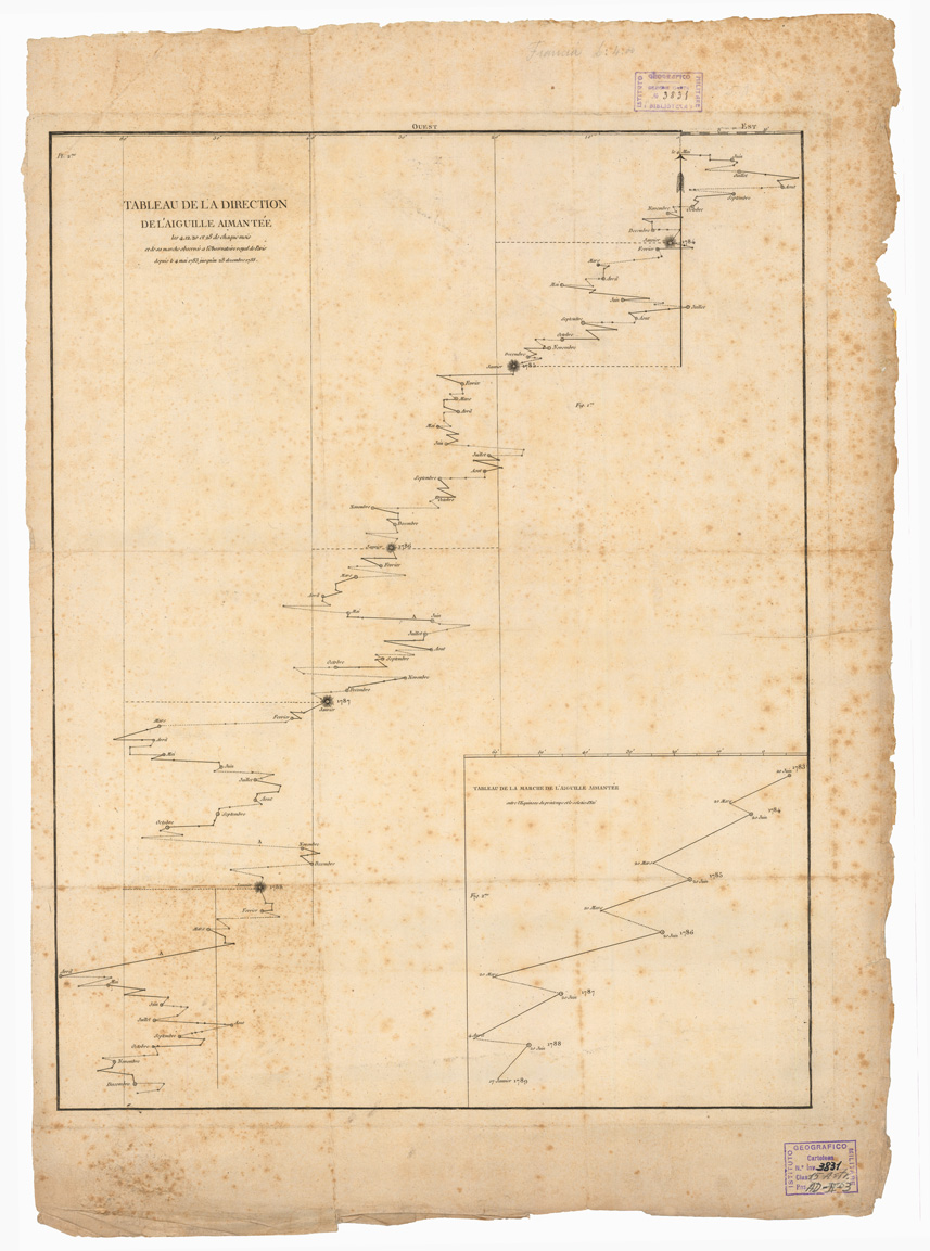 CARTA DEL CIELO - TABLEAU DE LA DIRECTION DE L'AIGUILLE AIMANTEE LES 4,12,20 ET 28 DE CHAQUE MOIS ET DE SA MARCHE OBSERVE' A L'OBSERVATOIR ROYAL DE PARIS