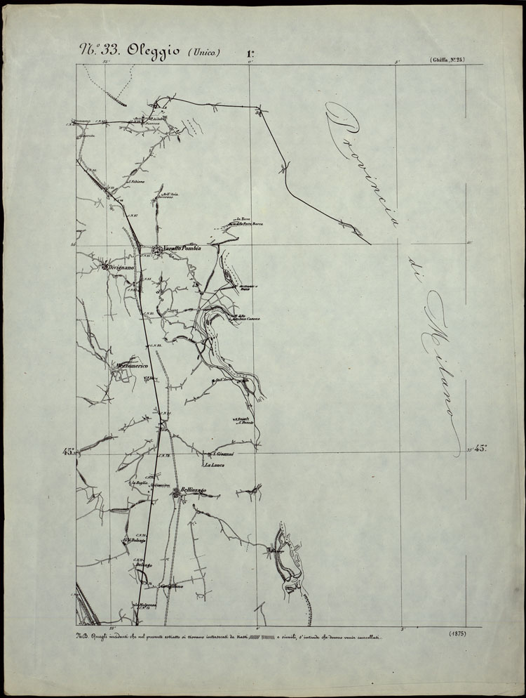 CARTA TOPOGRAFICA DEGLI STATI IN TERRAFERMA DI S.M. IL RE DI SARDEGNA ALLA SCALA DI 1.A 50.000. OPERA DEL CORPO REALE DELLO STATO MAGGIORE - FOGLIO N.°33. OLEGGIO + DOCUMENTO DI AGGIORNAMENTO