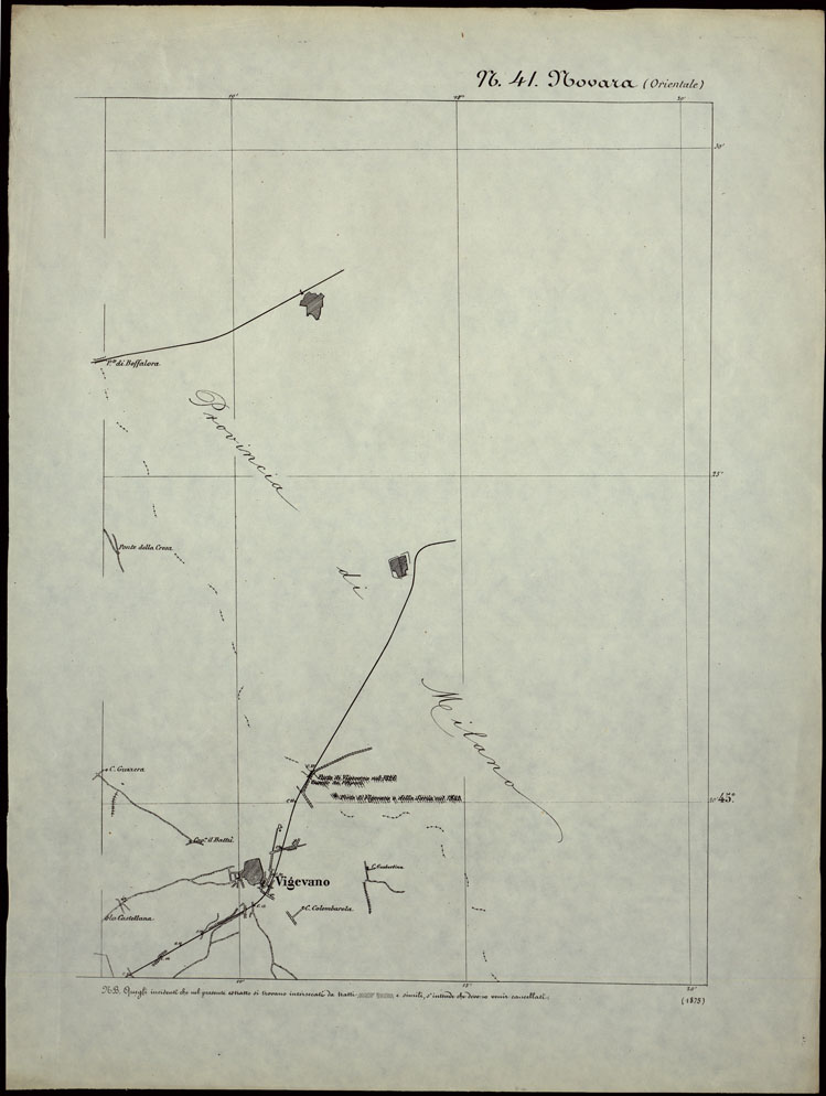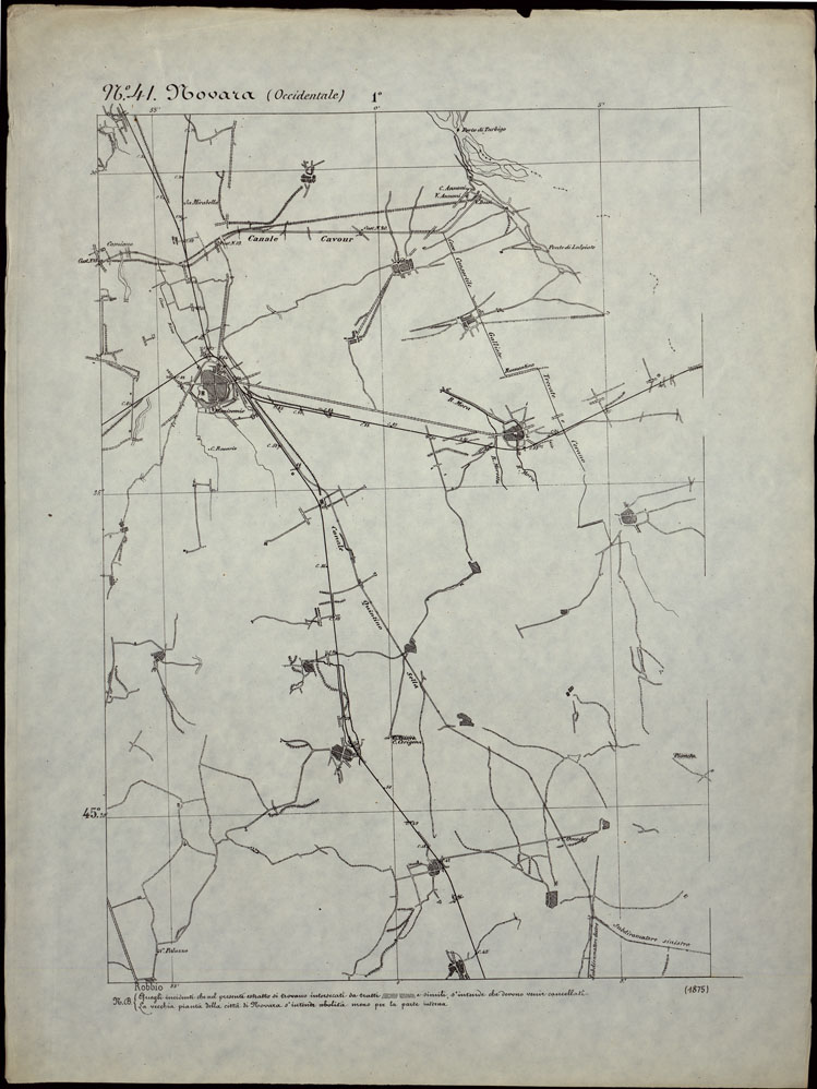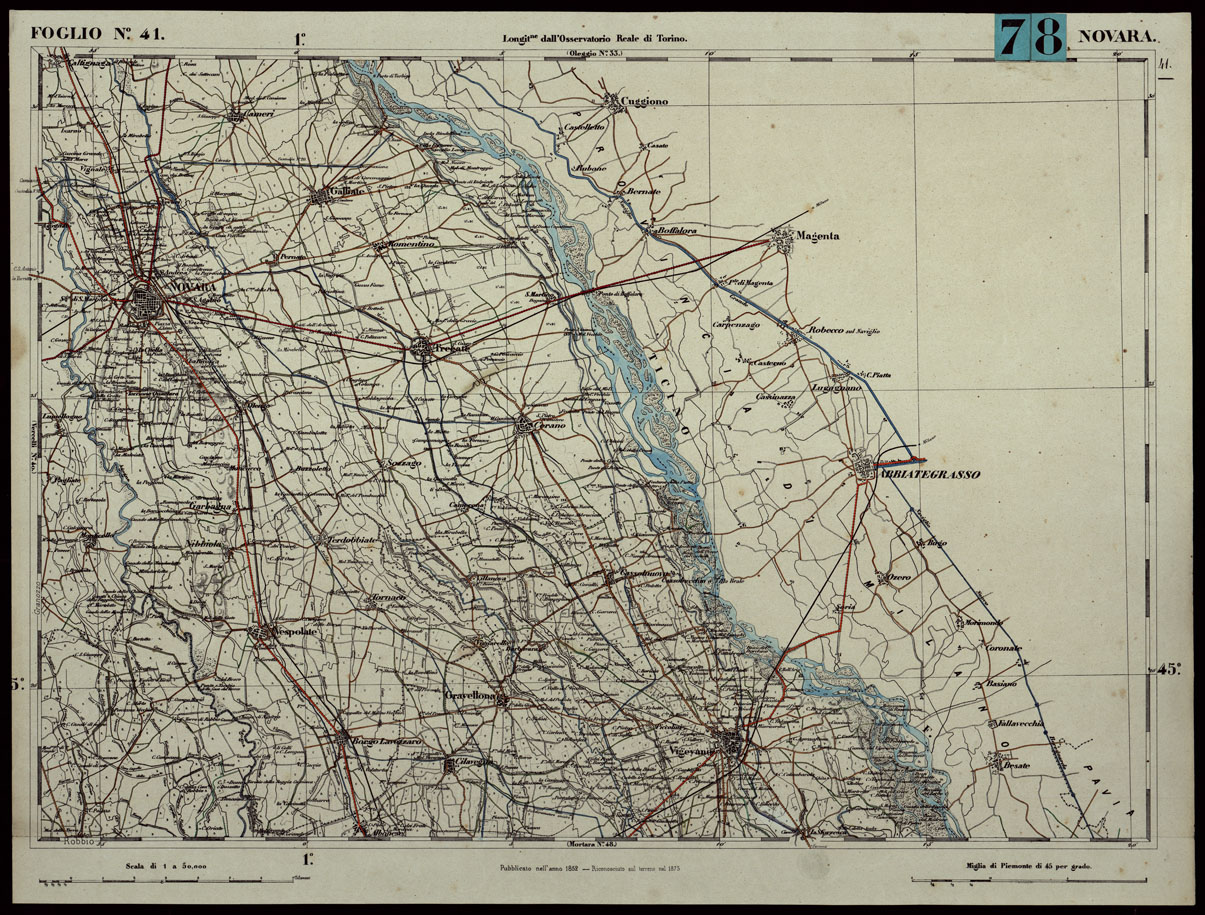 CARTA TOPOGRAFICA DEGLI STATI IN TERRAFERMA DI S.M. IL RE DI SARDEGNA ALLA SCALA DI 1.A 50.000. OPERA DEL CORPO REALE DELLO STATO MAGGIORE - FOGLIO N.°41. NOVARA + DOCUMENTO DI AGGIORNAMENTO PARTE OCCIDENTALE E ORIENTALE