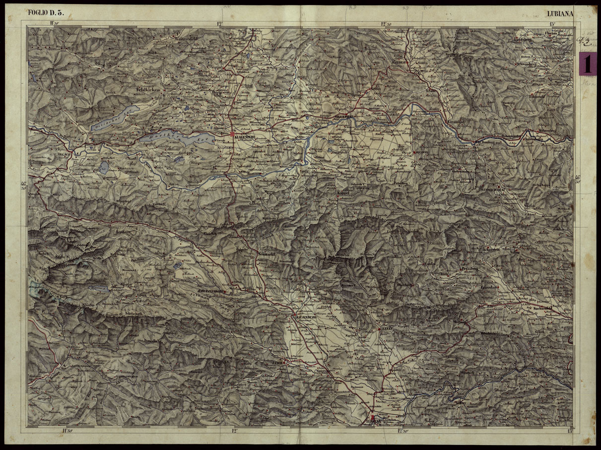 CARTA COROGRAFICA DEI VERSANTI SETTENTRIONALI E MERIDIONALI DELLE ALPI RETICHE CARNICHE E GIULIE IN 25 FOGLI - FOGLIO D.3 LUBIANA
